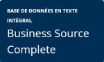 Business Source Complete est une base de données universitaire de références bibliographiques et de documents en texte intégral dans le domaine de l’économie et des affaires, notamment le marketing, le management, les systèmes d’information de gestion, la gestion de la production et des opérations, la comptabilité, la finance et l’économie en langue anglaise principalement. Elle donne également accès à des références juridiques liées à ces domaines.