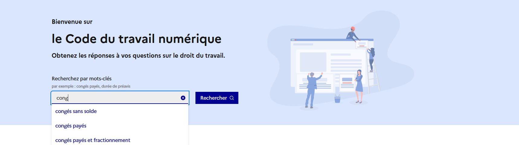 Le Code du travail numérique est un service public en ligne, gratuit, issu des ordonnances sur le renforcement du dialogue social de 2017 et mis en ligne le 1er janvier 2020.