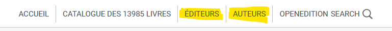 Les rubriques Editeurs et Auteurs sont directement interrogeables via les onglets permanents situés en haut de page :