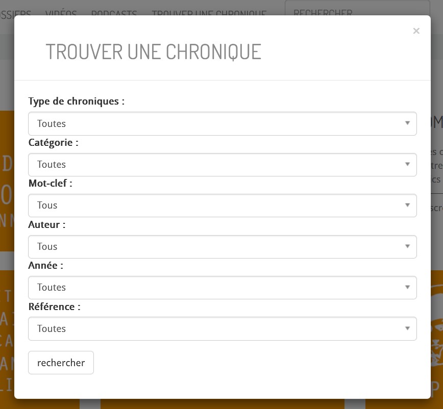 Pour trouver une chronique, une fenêtre multicritère permet d’effectuer une recherche ciblée :
