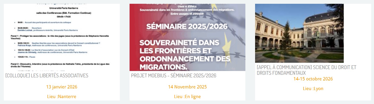 Agenda : annonces d’événements scientifiques en lien avec les droits et libertés fondamentaux